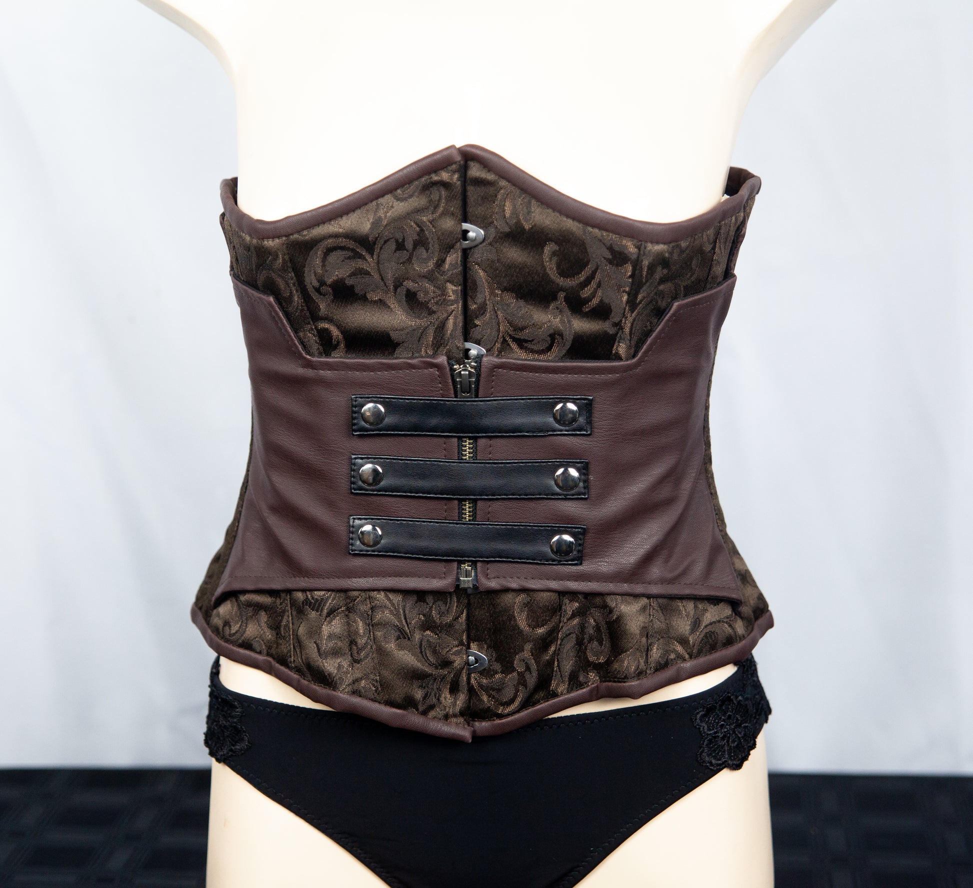 Corset - Brown Brocade & Brown PVC Stoompomp