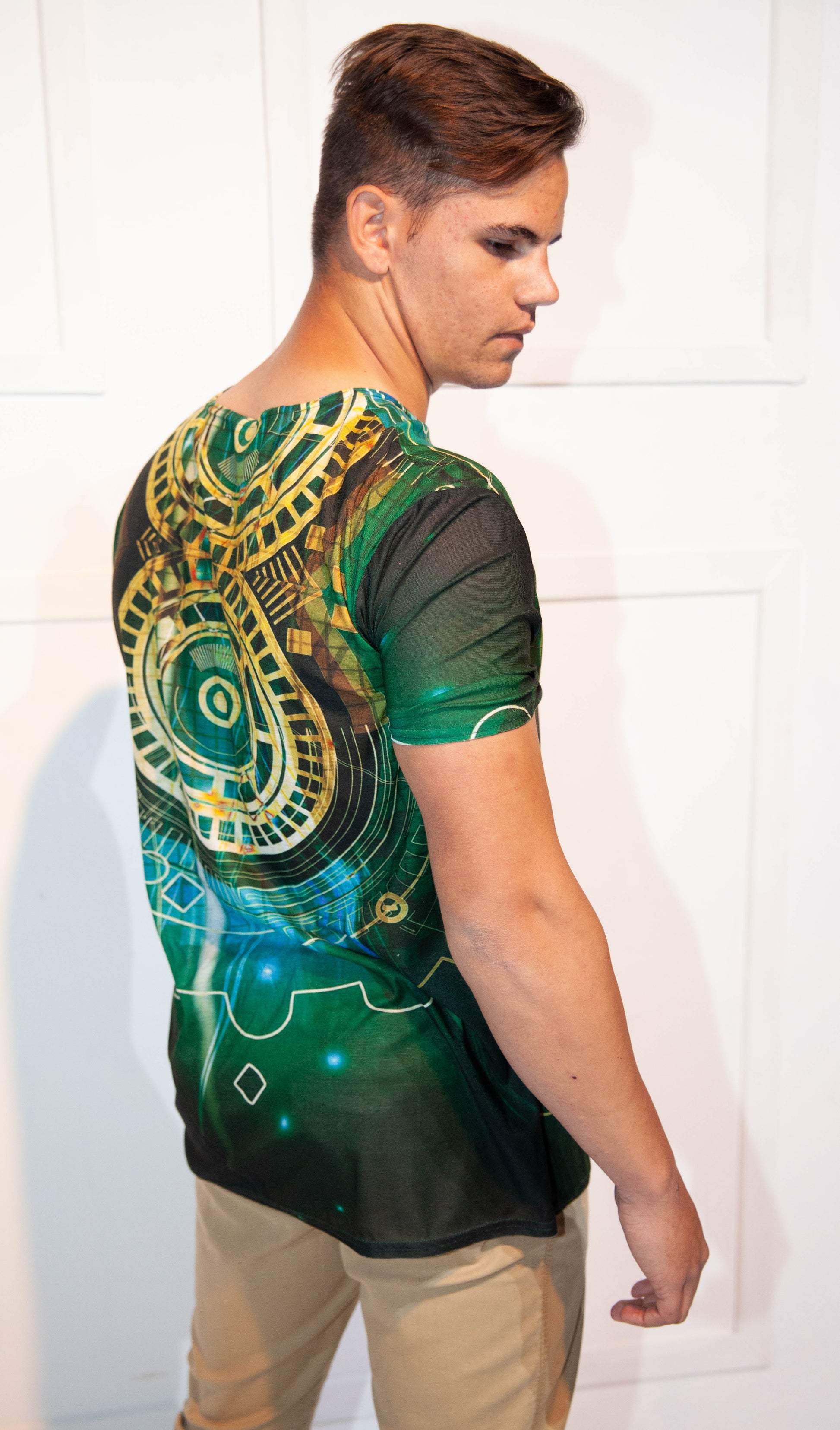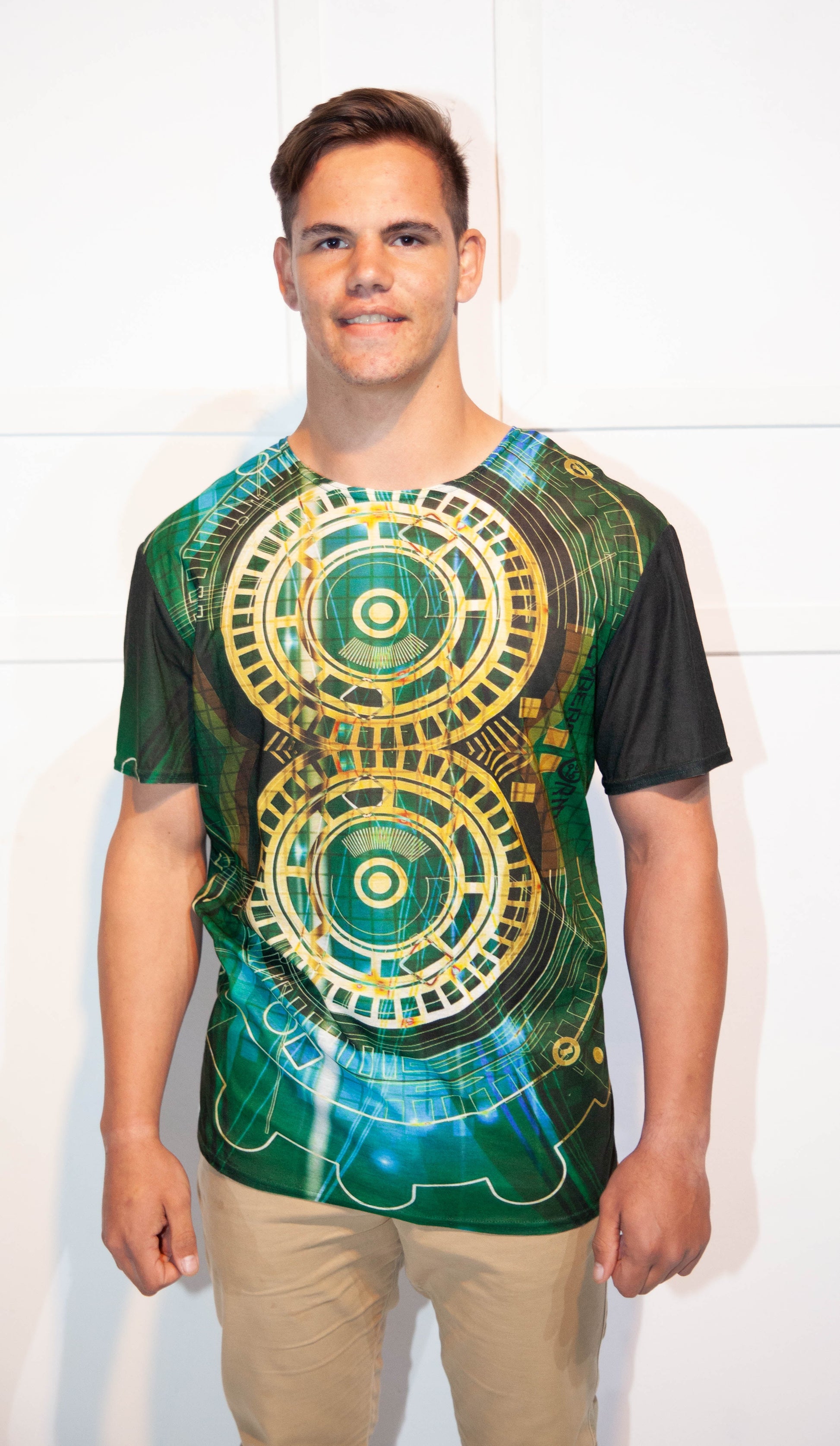 Mens T-Shirt - Stoompomp Cyberstorm Printed Green & Yellow Cogs