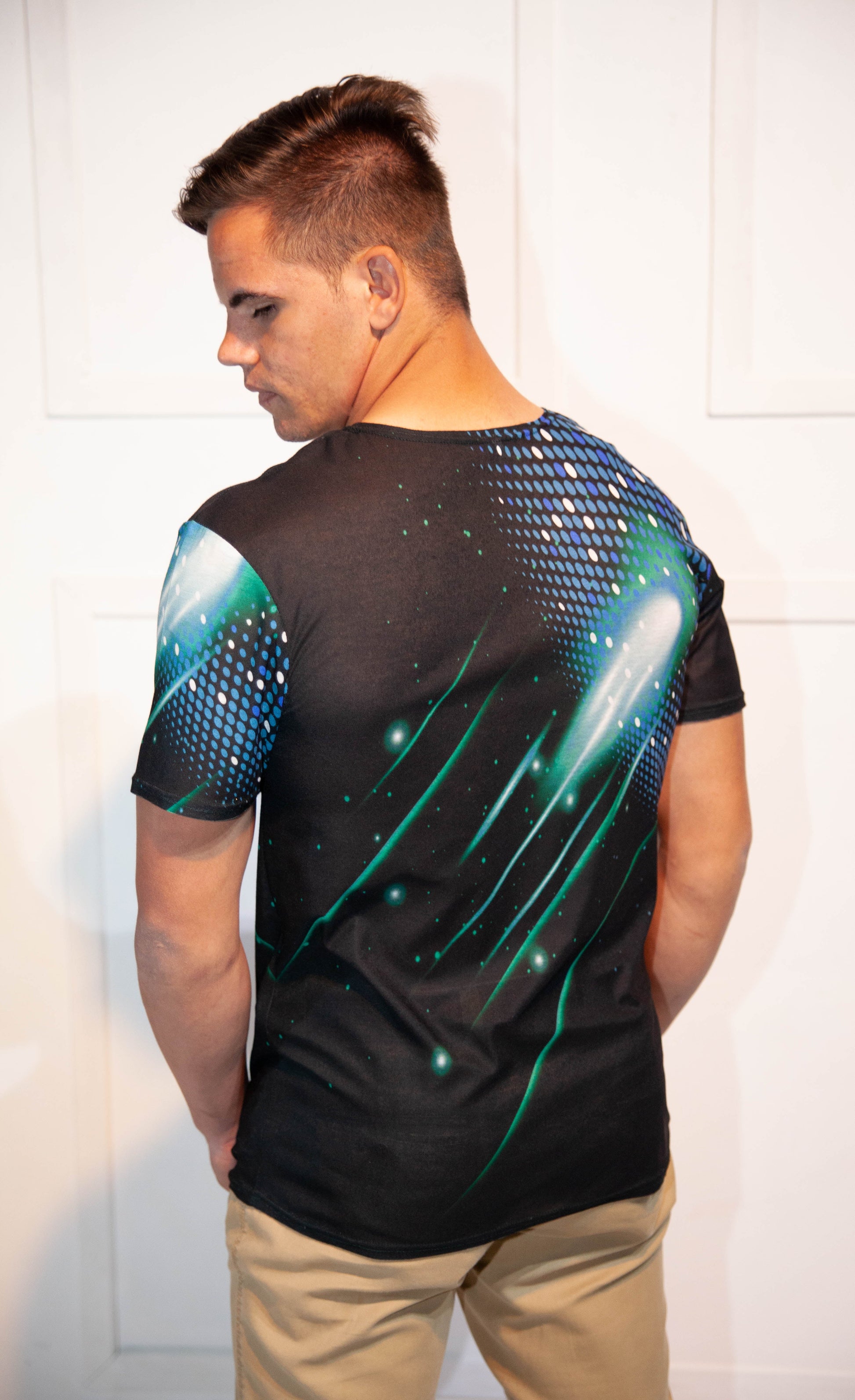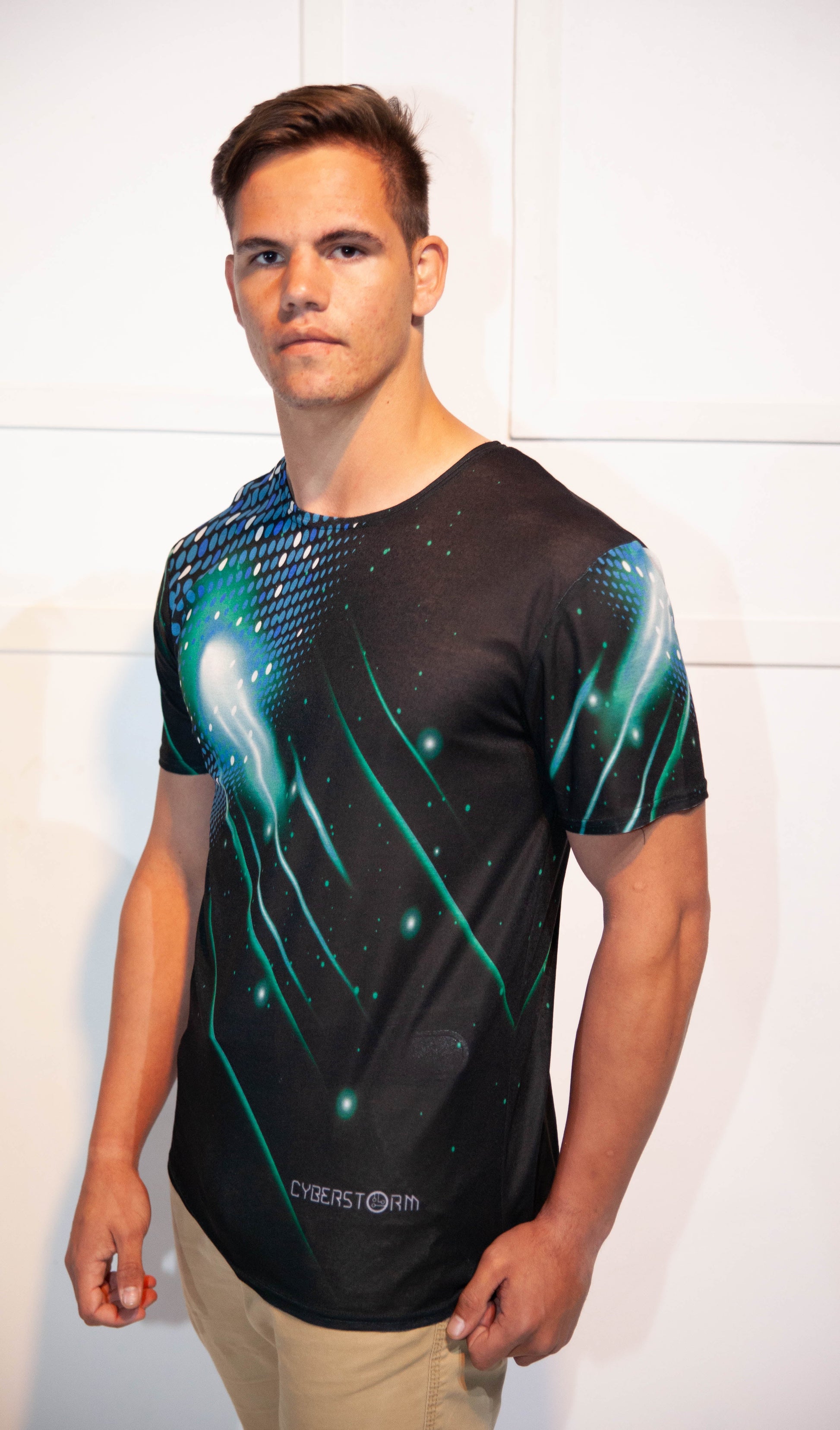 Mens T-Shirt - Stoompomp Cyberstorm Printed Turquoise Comet