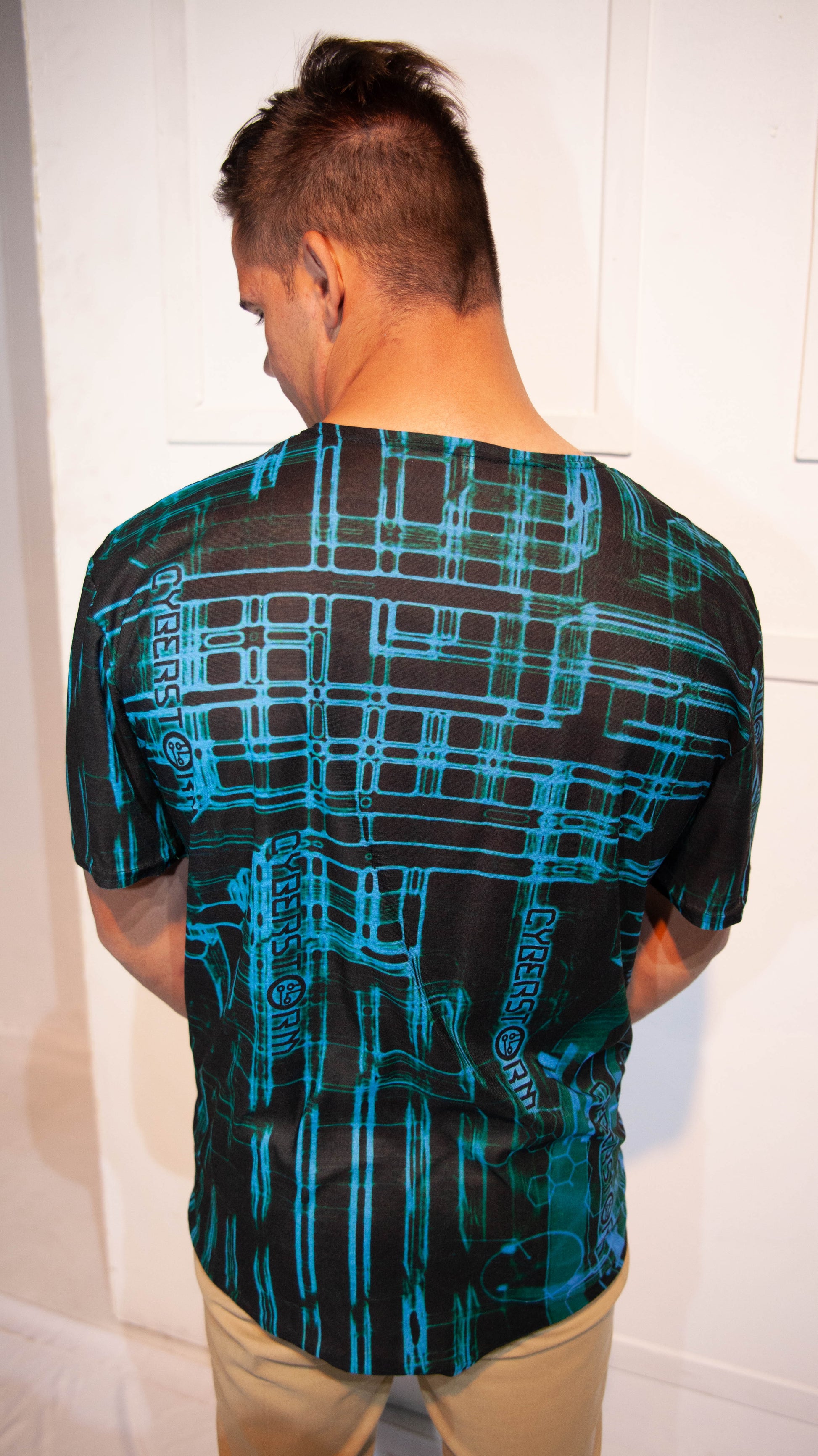 Mens T-Shirt - Stoompomp Cyberstorm Printed Turquiose Patterns