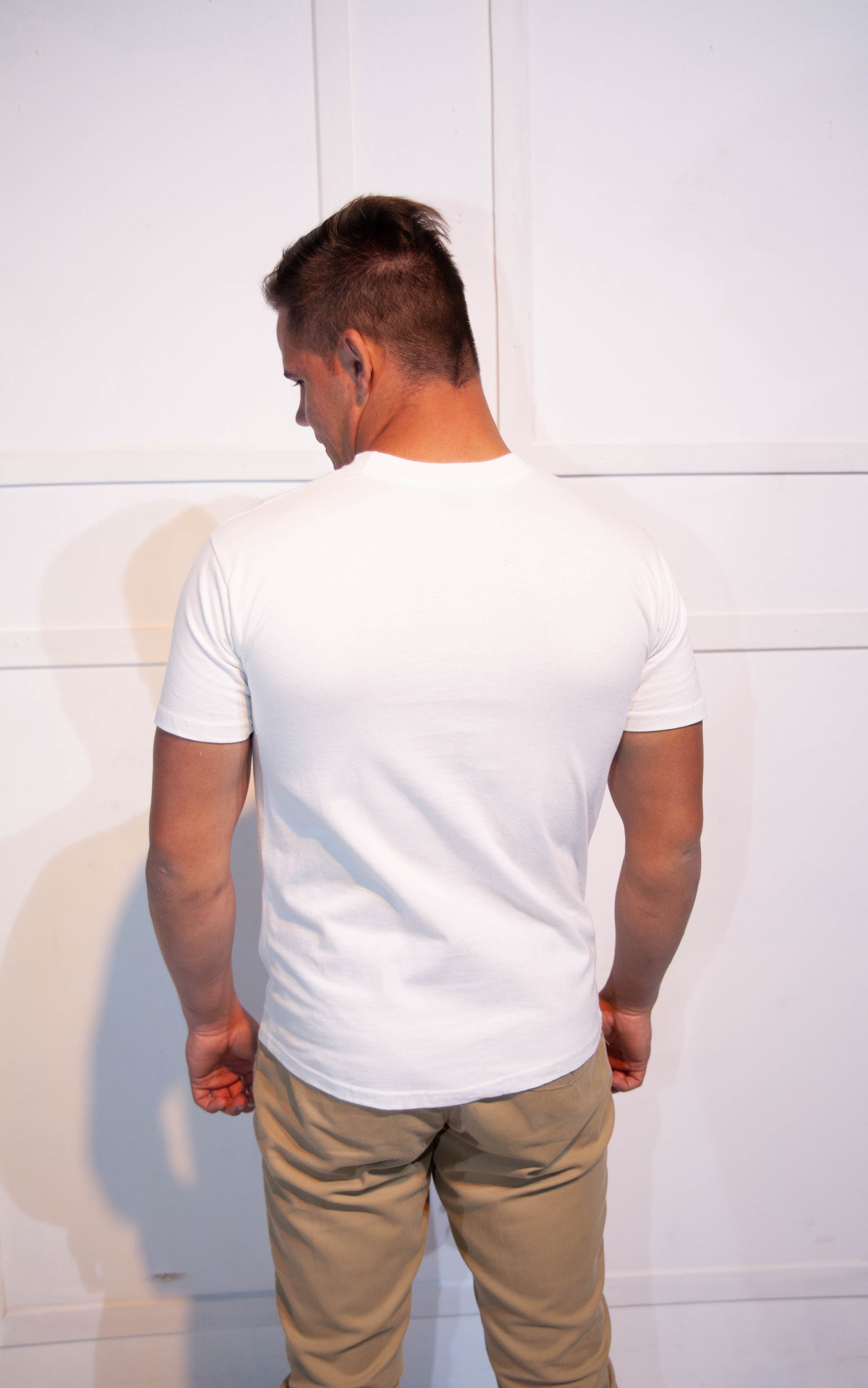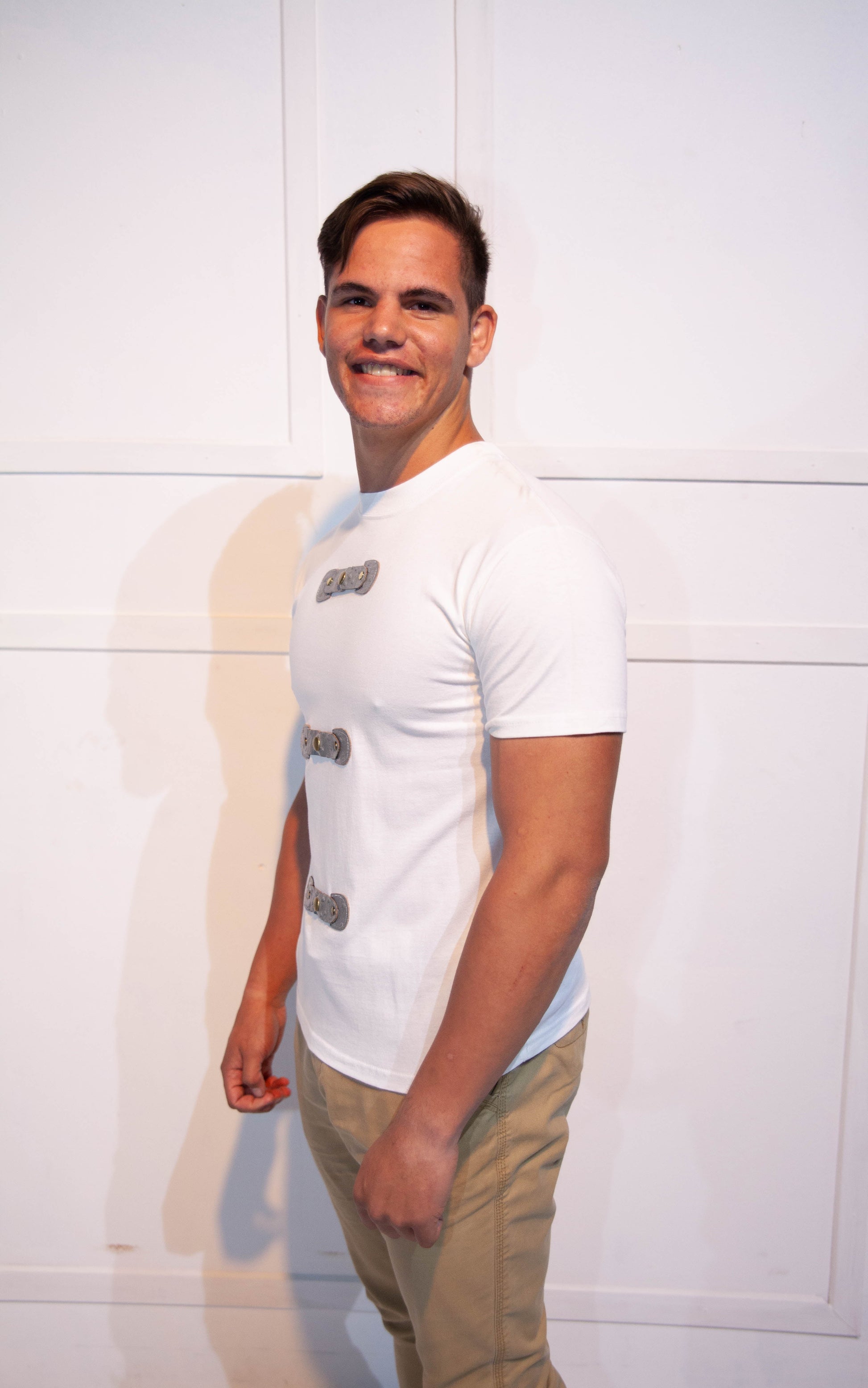 Mens T-Shirt - Stoompomp White with Leather Straps