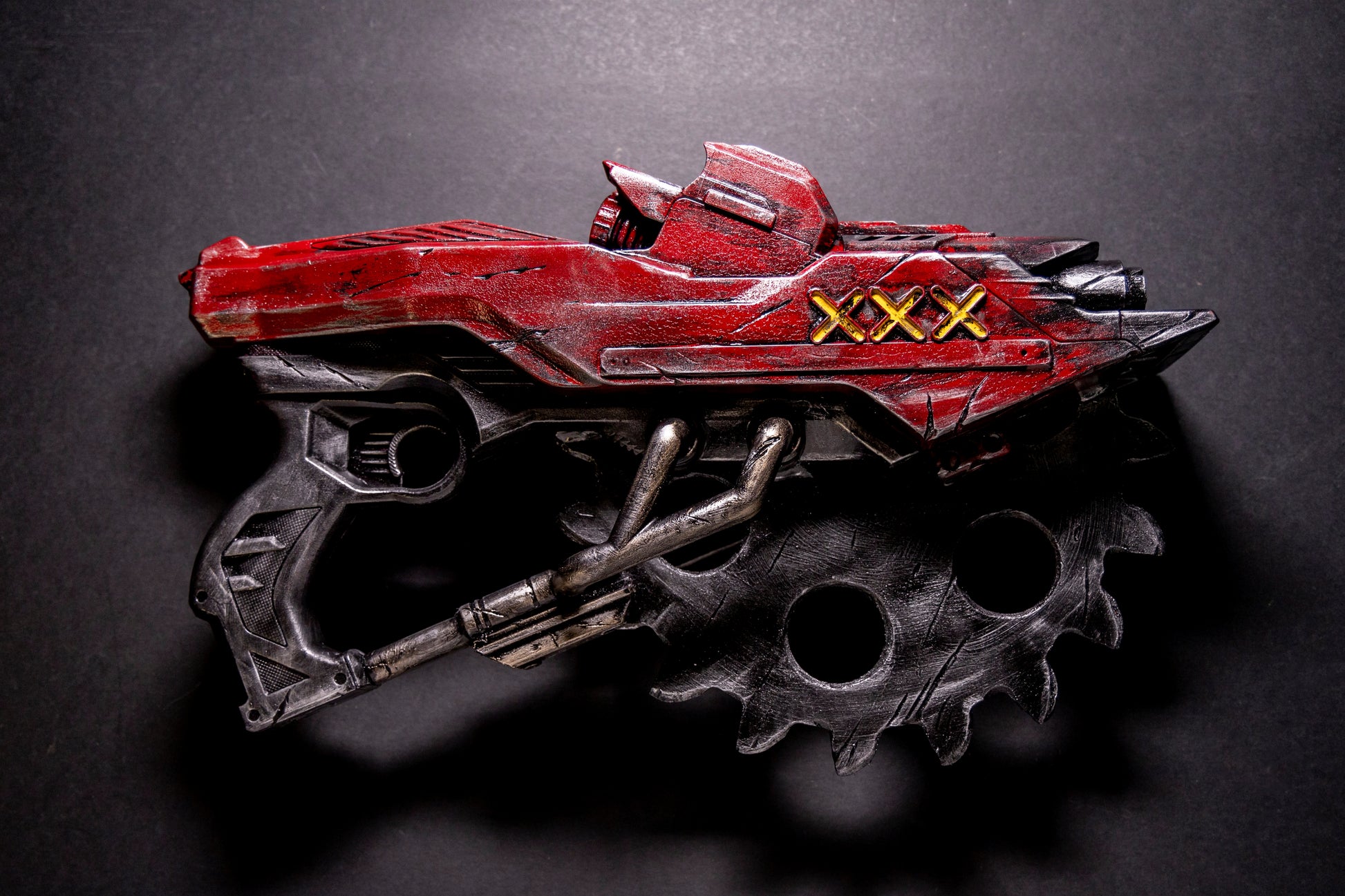 These are limited edition one-of-a-kind products. We are unable to exactly replicate these designs but if you'd like a custom-made Battle Scar Stoompomp Prop Gun please contact us to place your order.