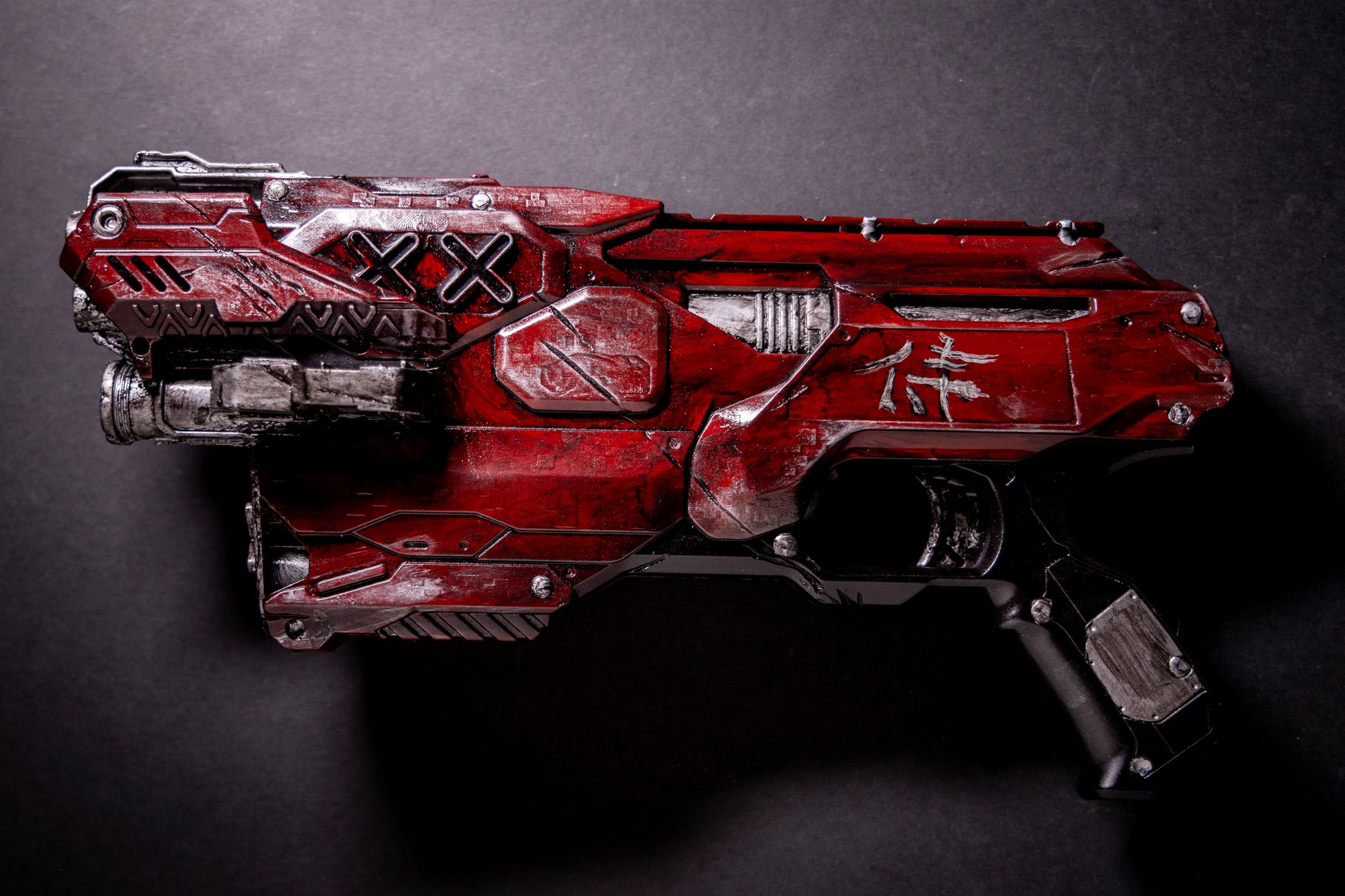 These are limited edition one-of-a-kind products. We are unable to exactly replicate these designs but if you'd like a custom-made Battle Scar Stoompomp Prop Gun please contact us to place your order.