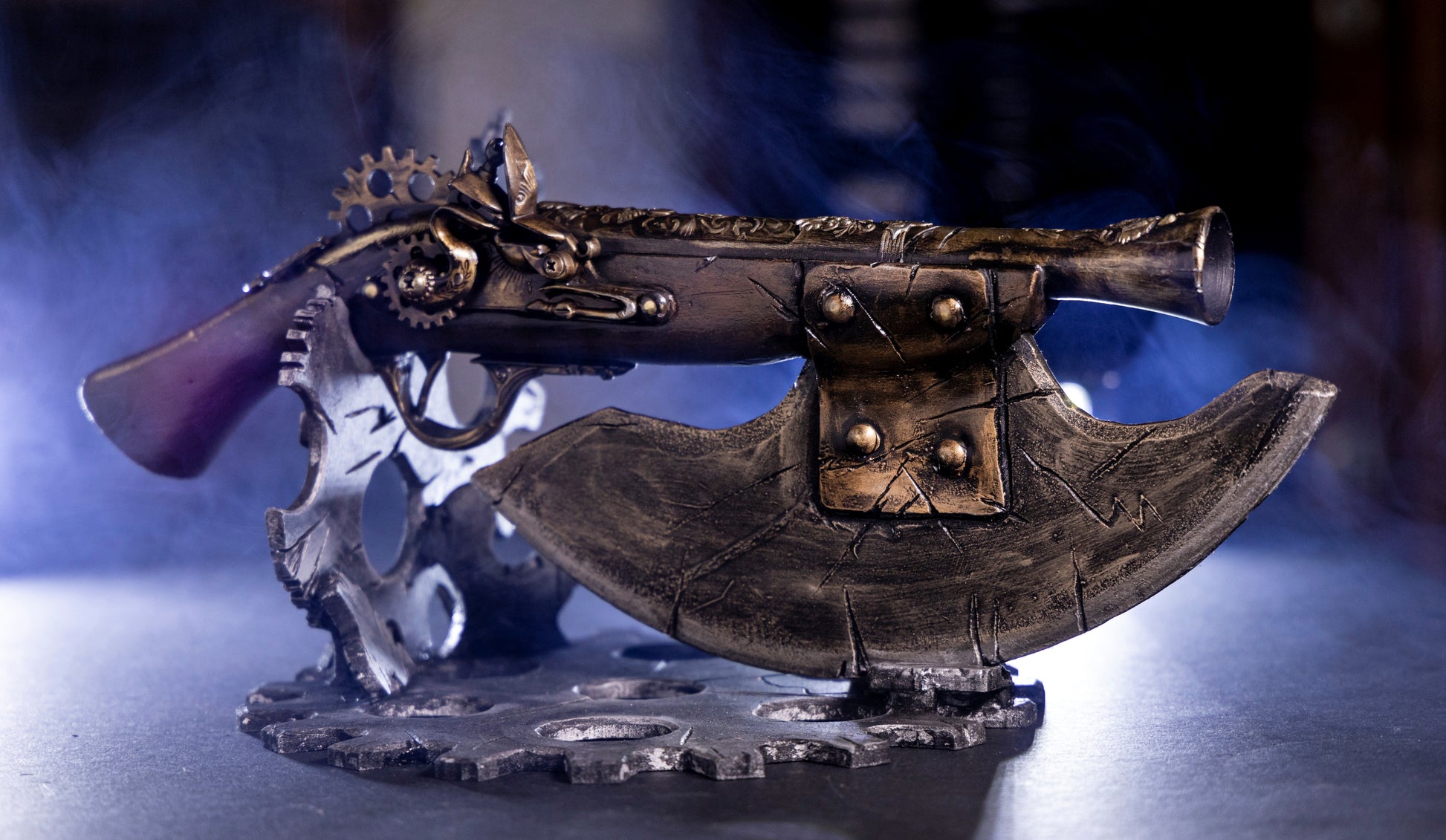 These are limited edition one-of-a-kind products. We are unable to exactly replicate these designs but if you'd like a custom-made Battle Scar Stoompomp Prop Gun please contact us to place your order.
