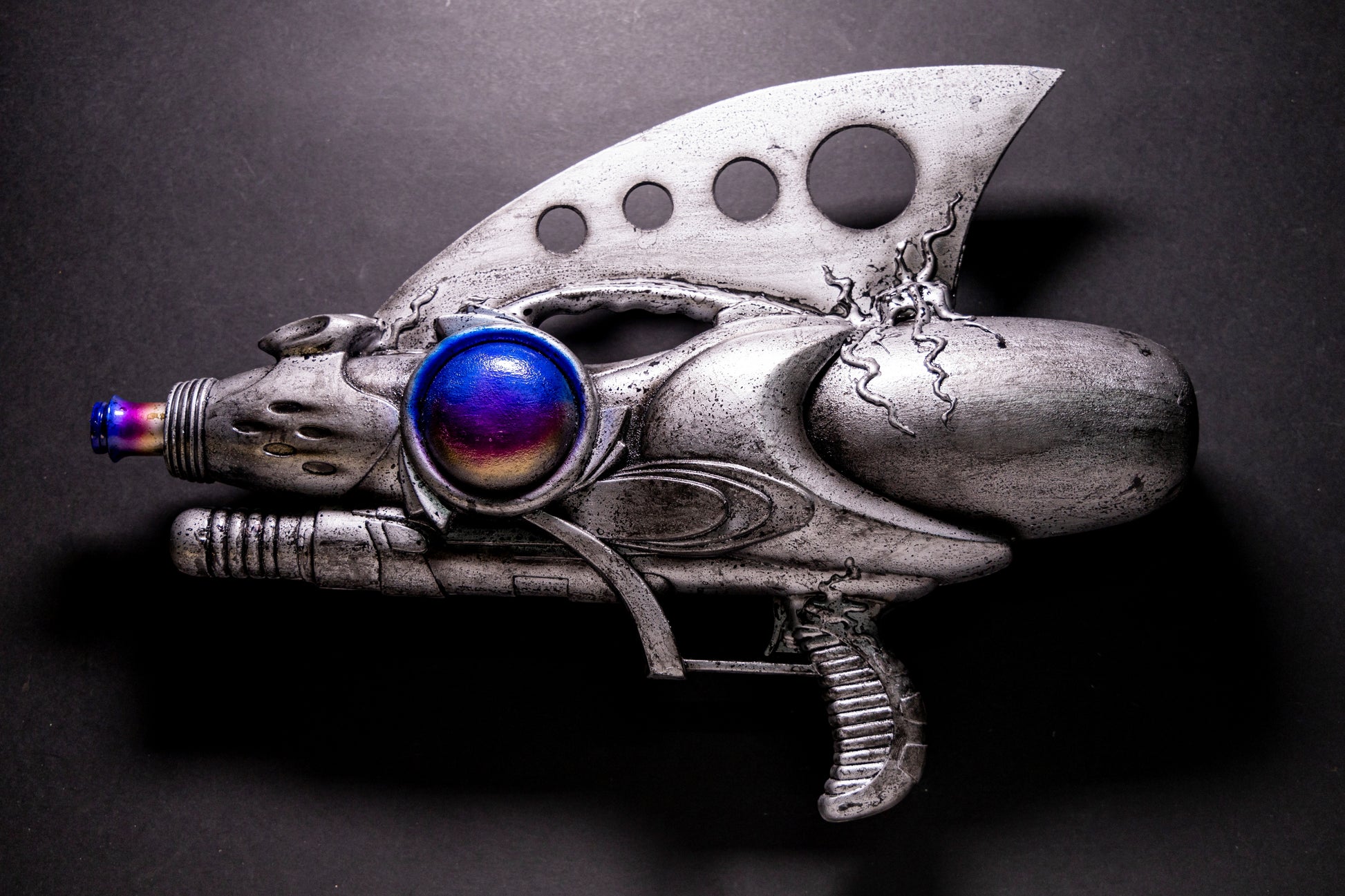 These are limited edition one-of-a-kind products. We are unable to exactly replicate these designs but if you'd like a custom-made Battle Scar Stoompomp Prop Gun please contact us to place your order.