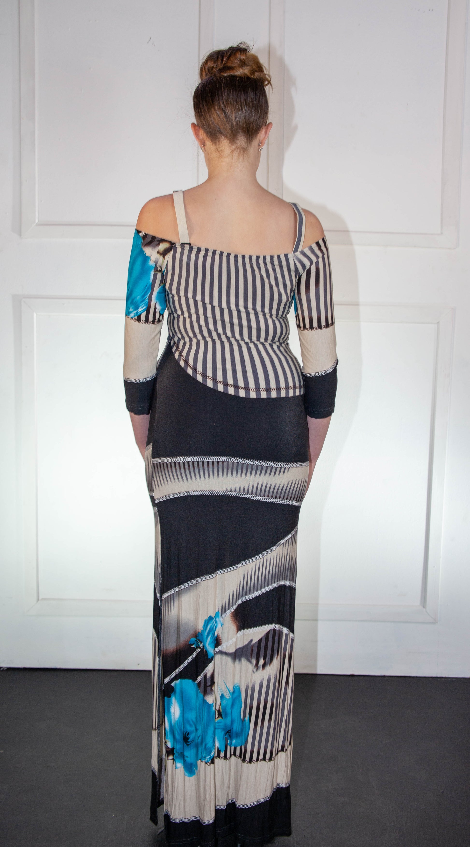 Striped Spring Dress - Blue Grey & Black