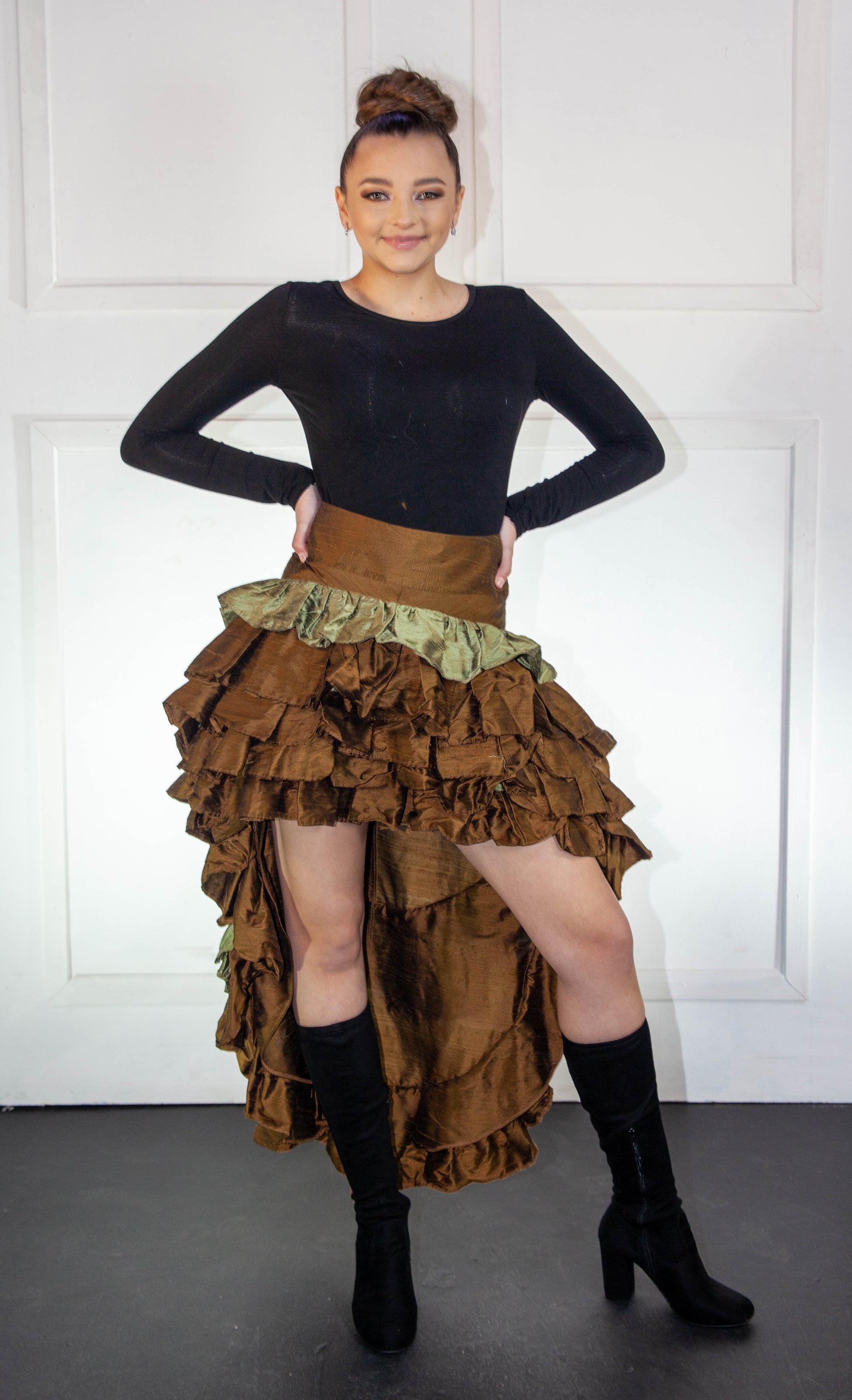 Victorian high-low skirt camo brown with green